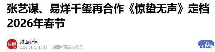 信息来源:闪电新闻:2026-01-27:《新上门女婿》母子售后来了 张译见到“妈妈”秒变夸夸团 “80后 很年轻的”封面新闻:2026-01-22:张艺谋、易烊千玺再合作《惊蛰无声》定年春节