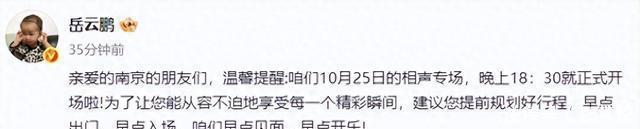 德云社岳云鹏发布提醒,南京专场提前开始,希望买票的观众规划好行程,早点出门,早点入场,不要错过每一个精彩瞬间。在文案评论区,网友的留言与演唱会也非常不同,清一色的好评,让网友感受到什么叫喜爱,什么叫支持,什么叫追捧。岳云鹏南京专场提前开始,这是为什么呢?提前多久呢?提前开始,会不会预示着演出提前结束呢?还需要报备吗?为什么岳云鹏相声演出与办演唱会待遇不一样呢?